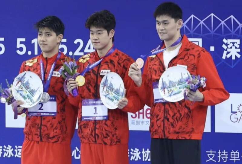 北京时间5月17日,全国游泳冠军赛男子400米决赛,潘展乐以3分45秒34的成绩获得冠军,费立纬收获亚军,孙杨则获得季军。