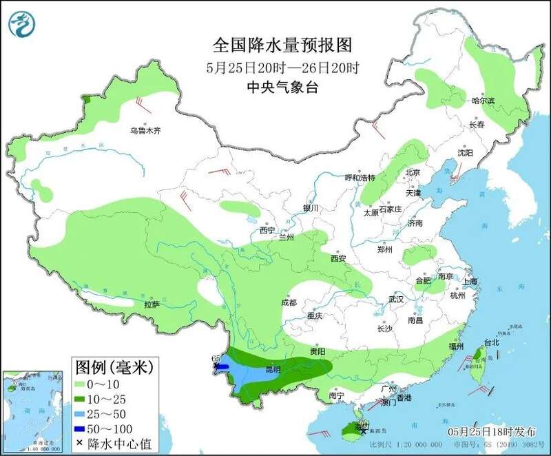 新疆北疆北部和西部、华北北部、东北地区北部和东部、西藏大部、青海南部、西北地区东南部、西南地区北部和南部、江南南部、华南北部和西部、海南岛、台湾岛等地有小到中雨,其中,云南中西部、海南岛东部等地部分地区有大雨或暴雨。