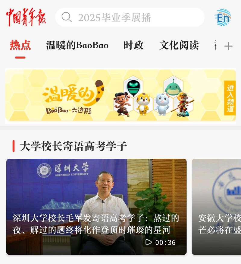 △深圳大学校长毛军发寄语高考学子:熬过的夜、解过的题终将化作登顶时璀璨的星河(剪辑:张力友)