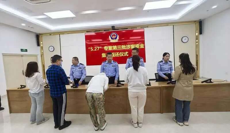 今年4月,南安市公安局举行“5·27”专案第三批涉案资金集中返还仪式。中青报·中青网记者 何春中/摄