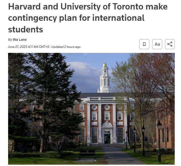 据报道,这是美国国土安全部5月撤销哈佛招收国际学生的资格后,哈佛方面首次公布的国际学生备用策略。