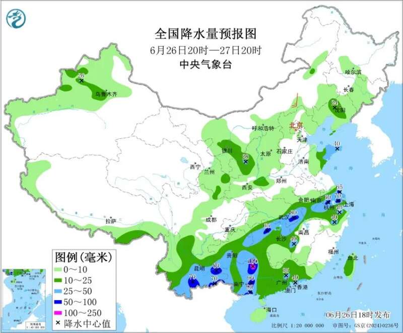 广西、云南中南部、贵州东北部和南部、湖南北部、湖北东部、江西北部和西部、安徽南部、江苏南部、上海、山东半岛等地的部分地区有大到暴雨,其中,广西北部等地局部地区有大暴雨。