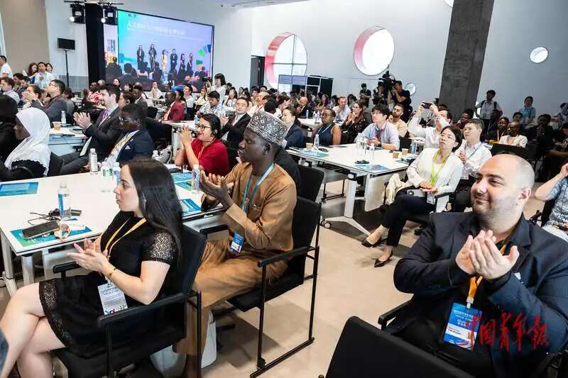 ▵7月16日上午,江苏苏州,2025年世界青年发展论坛人工智能与科技创新主题论坛,参会的各国青年代表。当日,2025年世界青年发展论坛举行人工智能与科技创新主题论坛,各国青年代表就相关议题展开交流。中青报·中青网记者 李隽辉/摄