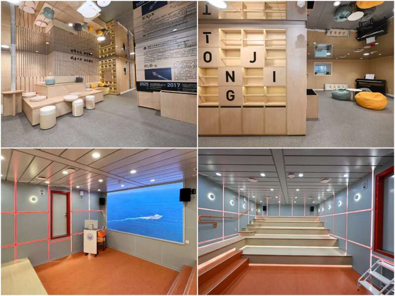 “同济”号将为师生带来前所未有的教学体验。船上可以模块化搭载各种集装箱式船载实验室、作业型ROV(水下遥控机器人)、无人艇等移动与固定观测节点自组网装备,学生可直接参与海洋地质勘探、海洋生态采样、装备试验等任务,实现“边航行、边实验、边分析”。