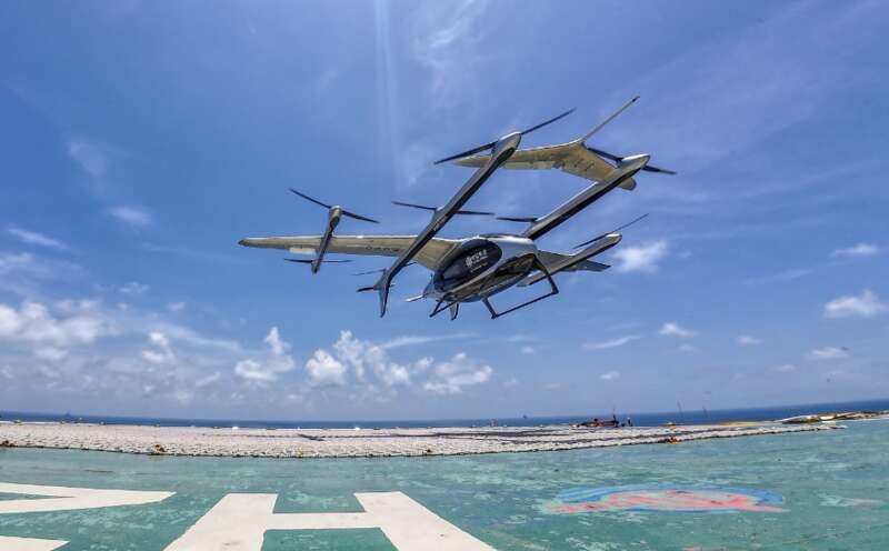我国自主研发的2吨级电动垂直起降航空器——“凯瑞鸥”,装载新鲜水果和紧急药品等物资,从深圳陆地起降点起飞。经过58分钟的跨海域飞行,降落在距离深圳海岸线150公里的海上油气平台,成功完成了运输任务。