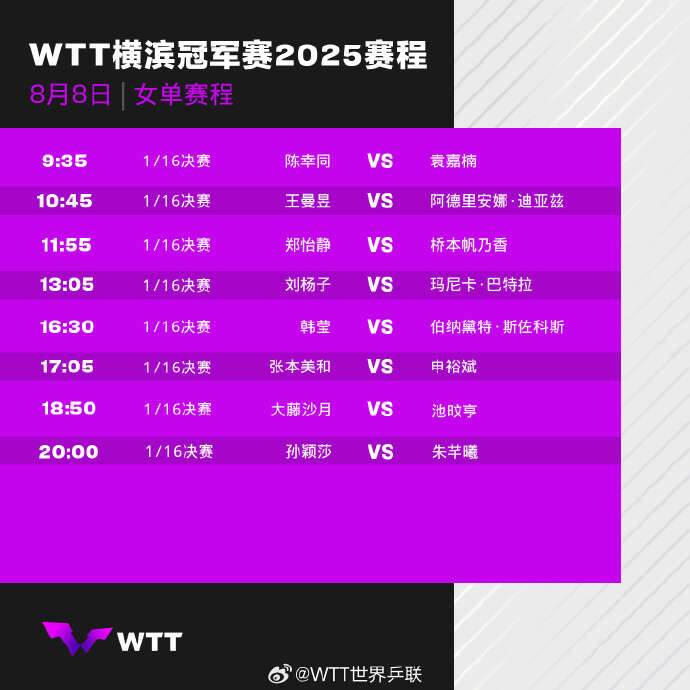 为国乒加油!WTT横滨冠军赛首轮赛程出炉