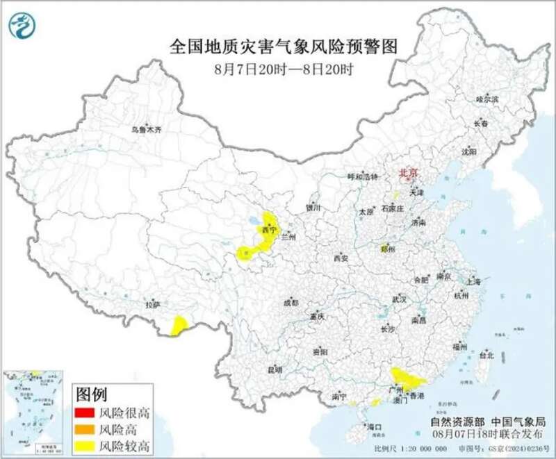 自然资源部与中国气象局联合发布地质灾害气象风险预警,预计今天,广东中部和西南部、西藏东南部、青海东部等地部分地区发生地质灾害的气象风险较高。