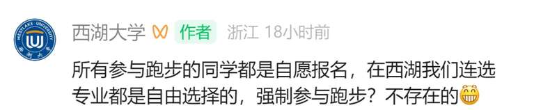 校方表示:所有参与跑步的同学都是自愿报名,强制参与跑步?不存在的。