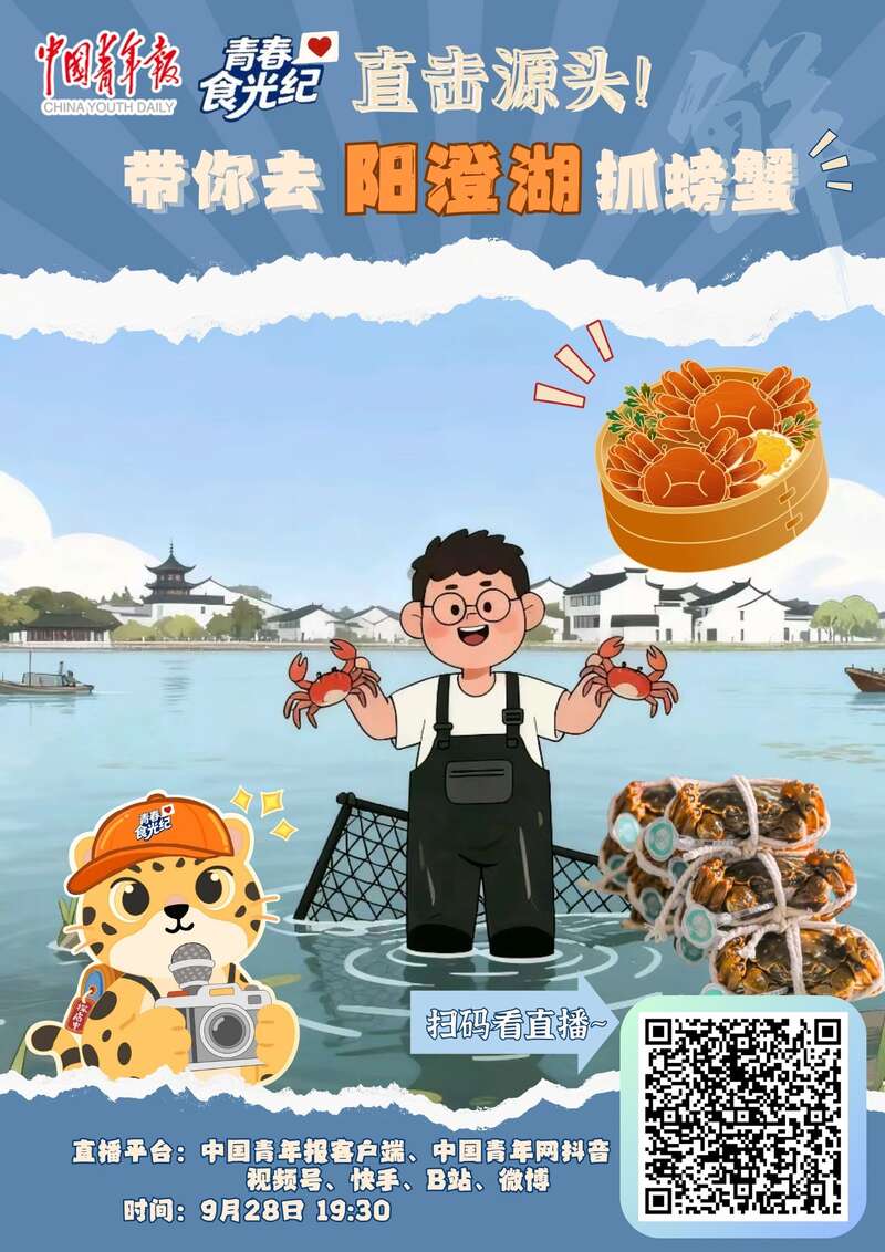 中秋、国庆双节将至,9月28日晚上7点半,在中国青年报客户端“青春食光纪”直播间,我们直击阳澄湖源头带你抓螃蟹。