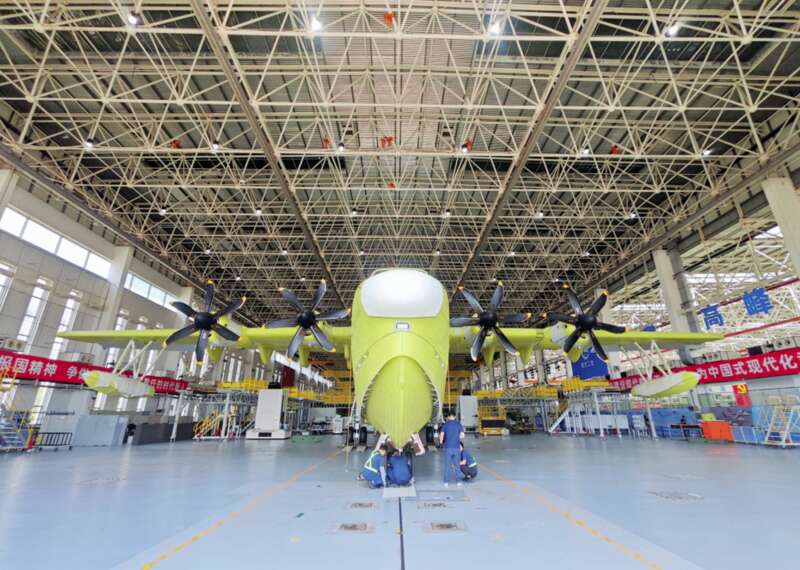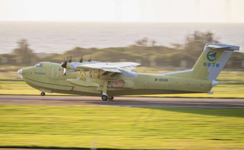 AG600“鲲龙”飞机批产第三架机总装下线并完成生产试飞