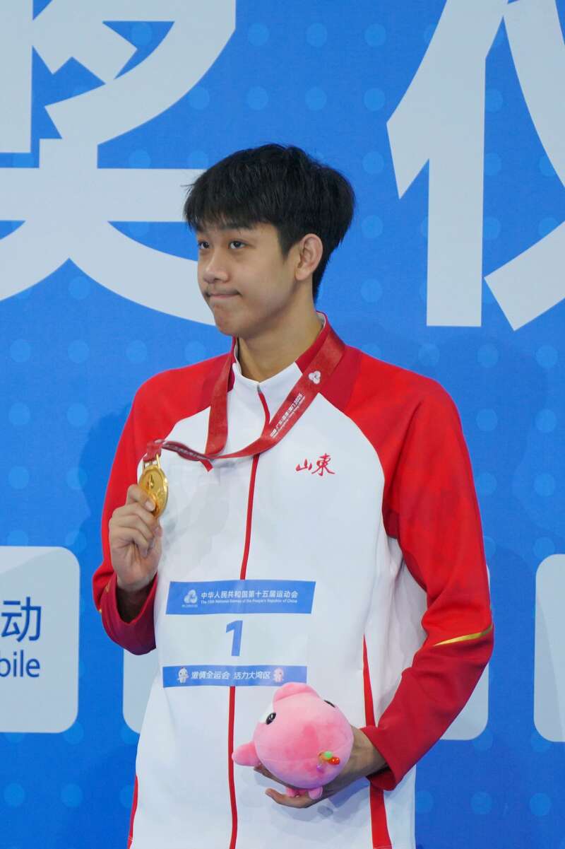 11月10日,深圳,18岁山东小将张展硕夺得男子400米自由泳冠军,将十五运会游泳首金收入囊中。中青报·中青网记者 田嘉硕/摄