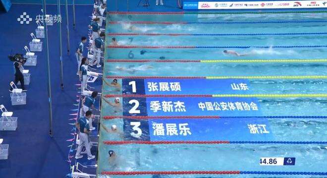 备受关注的男子200米自由泳决赛率先开始。18岁的山东队选手张展硕以1分44秒86获得冠军,刷新全国青年纪录。老将季新杰以1分45秒96收获亚军,潘展乐则以1分46秒37位列第三名。入围决赛的另一位名将孙杨因犯规被取消了成绩。