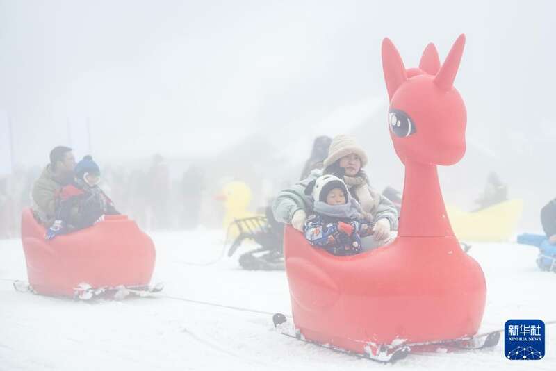 2025年1月18日,在重庆市南川区金佛山西坡滑雪场,游客在体验冰雪娱乐项目。新华社记者黄伟摄
