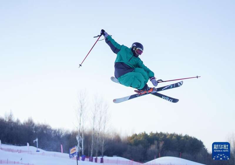 2025年2月10日,在第九届亚冬会自由式滑雪空中技巧混合团体决赛中,中国队夺冠。这是齐广璞在比赛中。新华社记者李尕摄