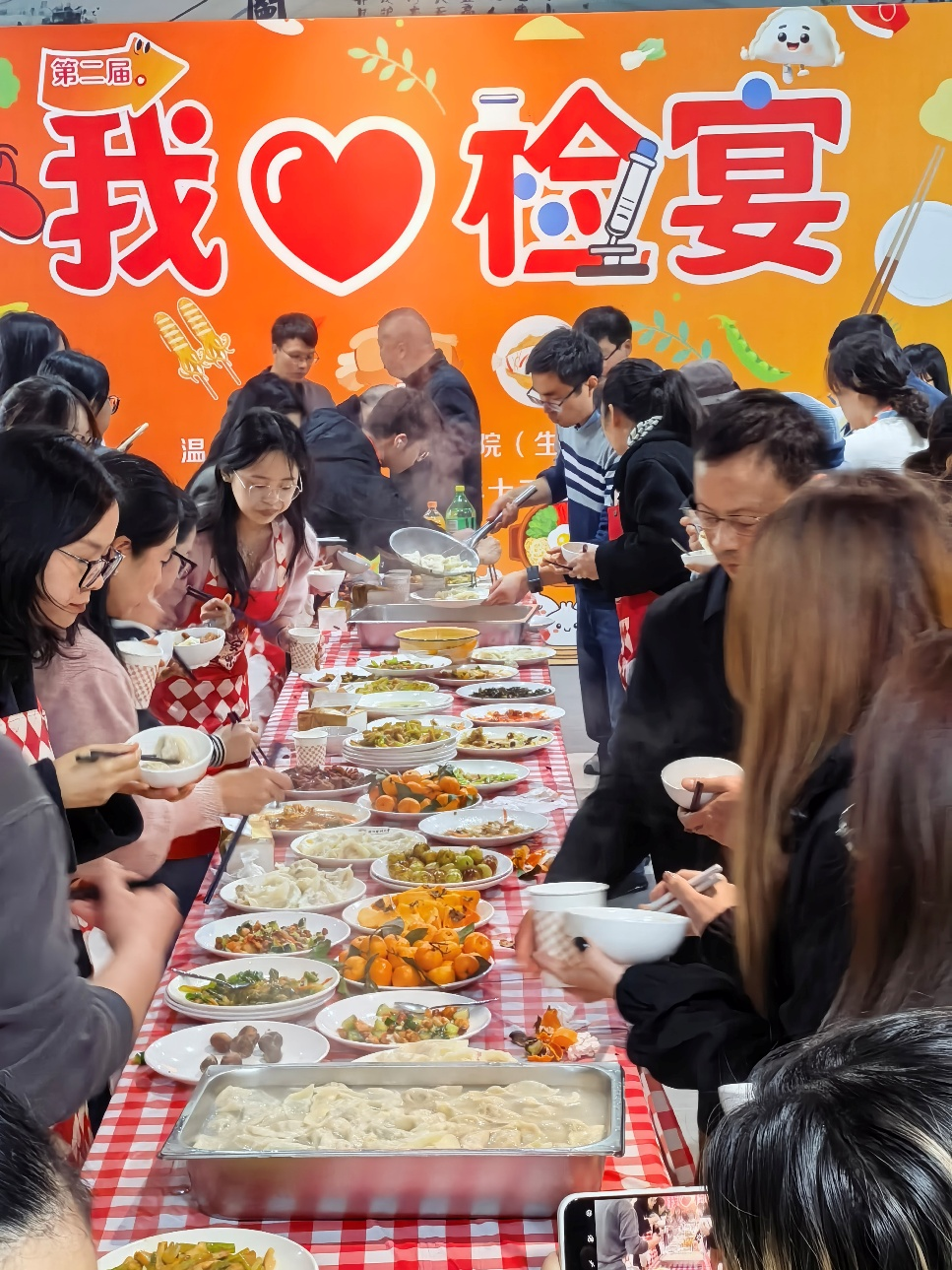 为厚植校园“家文化”根基,强化学生劳动教育,12月10日中午,温州医科大学检验医学院(生命科学学院)在茶山校区三食堂温情启幕第二届 “我爱检宴”美食分享暨劳动教育主题活动。学院教职工与本硕博学生代表欢聚一堂,师生以食为媒,将劳动教育与饮食文化深度融合,在协作烹调与倾心交流中,共赴一场充满烟火气的团圆之约。