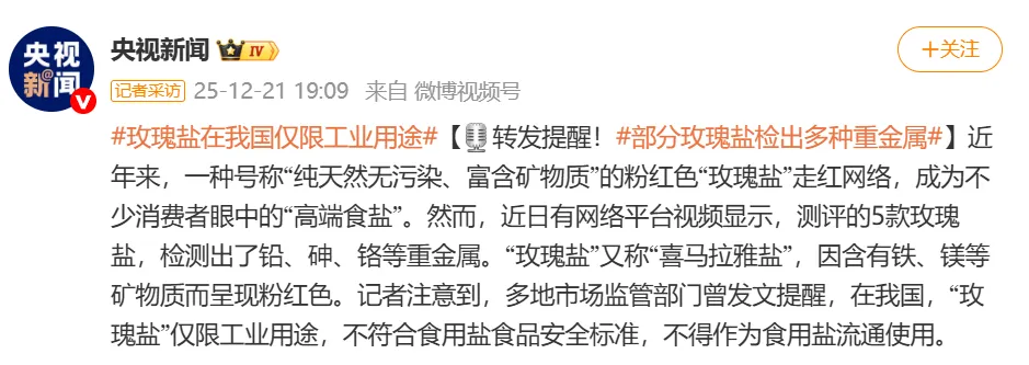 突然卖爆!“玫瑰盐”实则不宜食用,专家紧急提醒