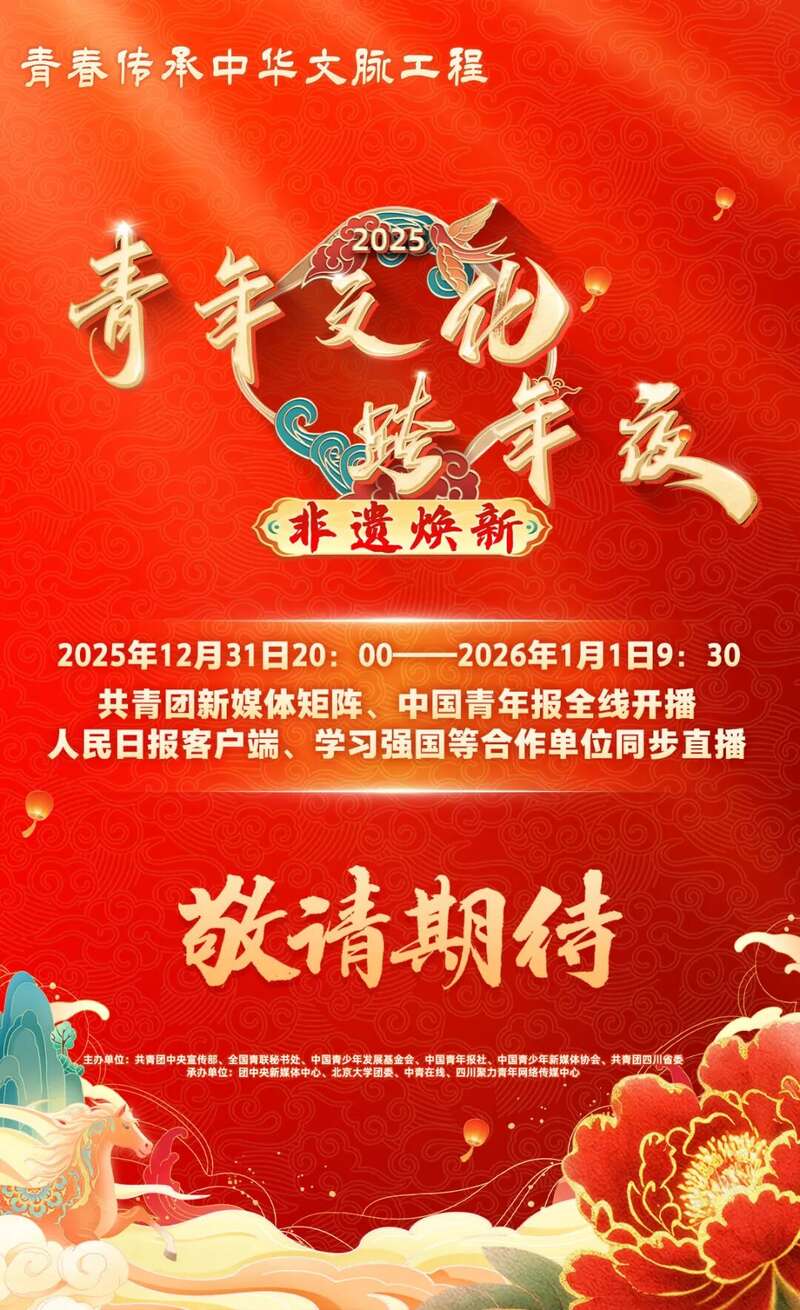 “青年文化跨年夜·非遗焕新”将于2025年12月31日20:00