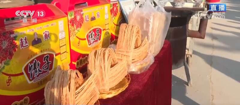 在大集上还有很多黄岗镇的特色美食,比如说这个“烘鱼”,鱼肉软烂,各个年龄段的食客都非常喜爱这种美食。看这里还有黄岗馓子,金灿灿的外表非常诱人,而且它非常薄,非常酥脆,也考验制作者的技艺。