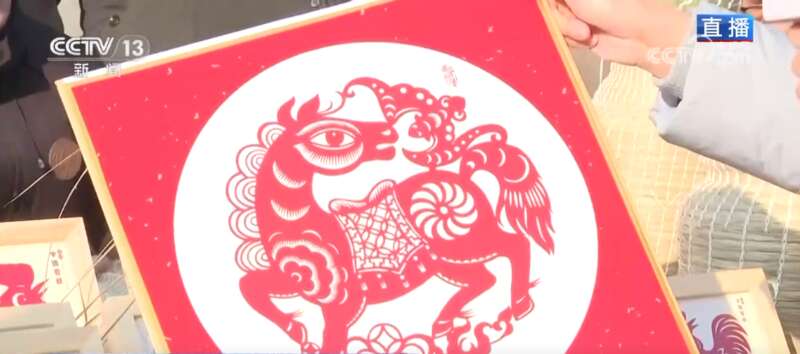 现在在黄岗镇黄河大集不仅能吃美食、买东西,这里还成为了集民俗体验与非遗传承于一体的综合性市集。在这里,不仅能感受到浓厚的市井烟火气,也能来一场沉浸式的文化体验。除了锣鼓表演,在大集上也有不少手工艺的摊位。看这个是单县草编,制作者双手上下翻飞,做成这种花瓶、葫芦、小筐,既实用又美观。新年要到了,再看这个是单县剪纸,一把剪刀、一张红纸、一双巧手,一只小马就活灵活现展示在大家面前了,真的是惟妙惟肖。