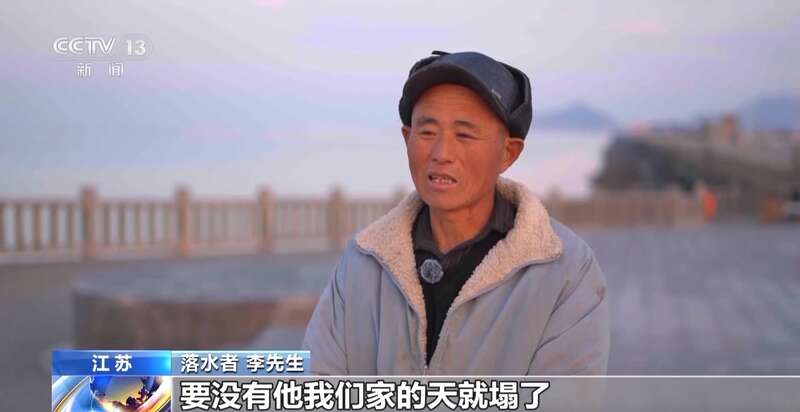 落水者 李先生:感谢王大哥救我,我是一家的顶梁支柱,要没他,我们家的天就塌了。谢谢他,我在此表示衷心感谢。