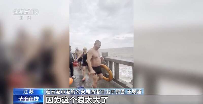 连云港市港航公安局西港派出所民警 王颖超:但是他跟我说他是国家级救生员,当时我问你是否能救,因为浪太大了,他跟我说没问题,他有信心。我用游泳圈跟他配合,他叫我负责拉,他下去负责救。