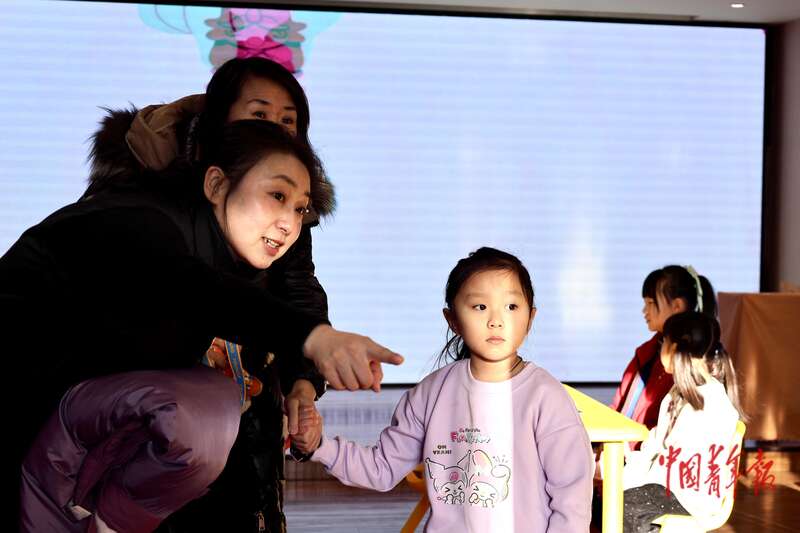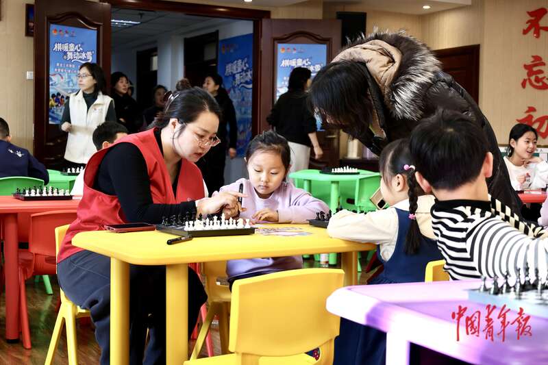 1月14日,黑龙江哈尔滨,黑龙江共青团·伙伴计划试课活动上,工作人员正在引导一名小女孩入座。当日,40名新就业群体的未成年子女在此体验了国际象棋、街舞、橡皮筋动力飞机等课程。据悉,黑龙江全省13个市地团组织利用团属青少年宫、社区、红领巾校外实践基地,设置了70个爱心托管点,在寒假期间同步开展共青团·伙伴计划爱心托管、成长陪伴、学业助力等公益活动。中青报·中青网记者 杨雷/摄