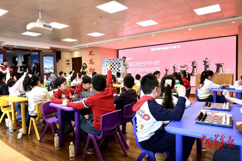 1月14日,黑龙江哈尔滨,孩子们纷纷举手回答国际象棋老师的提问。中青报·中青网记者 杨雷/摄