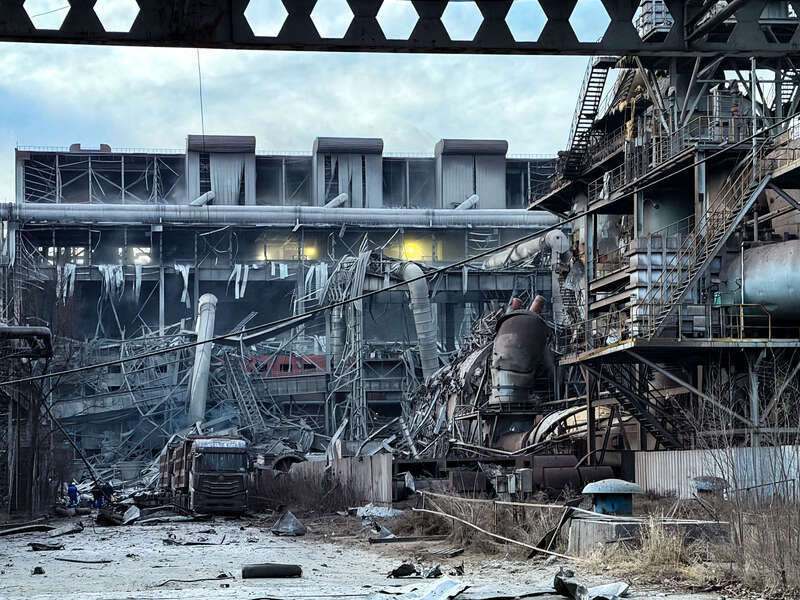 记者进入事故核心区域后,看到厂区多处建筑外墙开裂、窗户破碎,地面上散落着砖石与板材;一间控制室内的天花板大面积坍塌,电线垂落。记者还看到一扇铁门被爆炸产生的冲击波推出几米远,铁门上贴着的标牌写着“炼钢循环水高压室”。