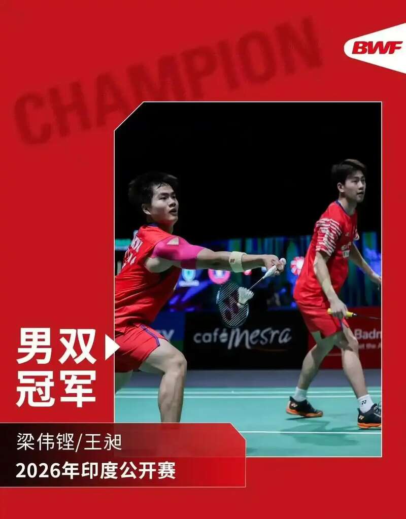 梁伟铿/王昶夺得2026年印度羽毛球公开赛决赛男双冠军