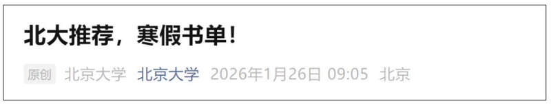 近日,清华大学官微和北京大学官微发文推荐寒假书单。