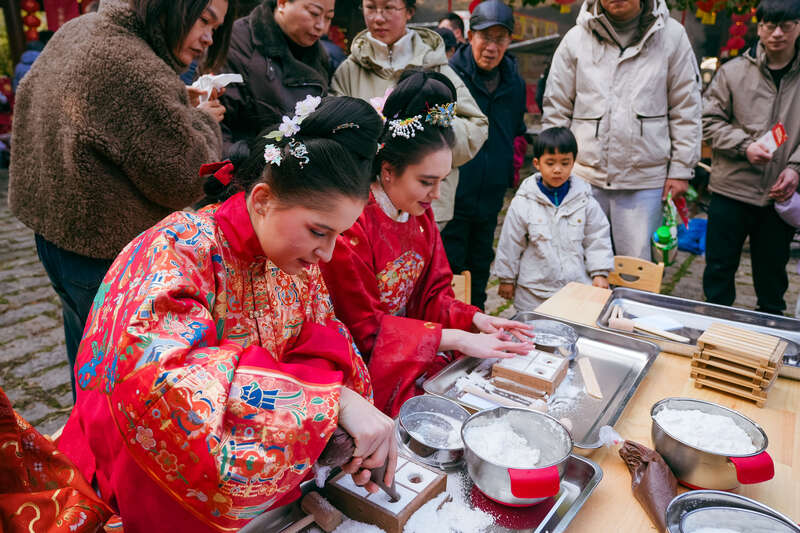 “这是我第一次穿汉服,还尝试了做米糕、扎鱼灯、写‘福’字,现场听戏曲、学舞蹈……整个集市到处都是喜庆的红色,大家都特别热情。我真正触摸到了中国文化的温度,让我很难忘。”来自俄罗斯的交换生王安琳说。同样来自俄罗斯的留学生安娜也表示:“这次活动让我与中国文化产生了深深的共鸣。尤其是穿上汉服的那一刻,仿佛能感受到中华文化在血脉中流淌。这不仅是学习,更是一次情感的联结。”