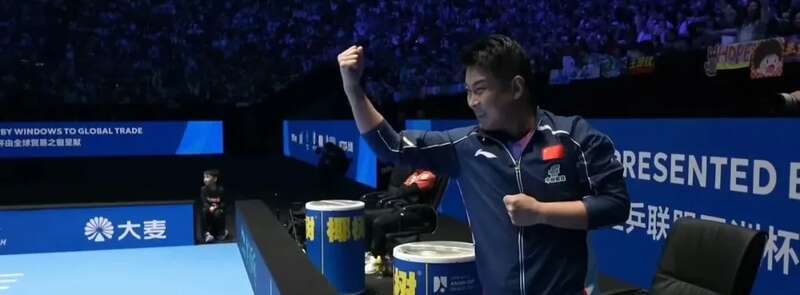击败张本智和!王楚钦夺冠后指向王皓,两人的互动太帅了