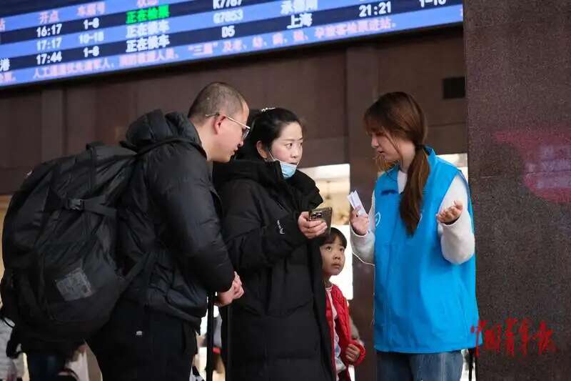 △2月8日,北京站,首都师范大学青年志愿者隋明妤在候车室内流动值守,随时准备接受旅客问询并提供帮助。据了解,2026年春运“暖冬行动”已全面启动,1.8万余名春运志愿者身着“志愿蓝”马甲,在全国527个车站、7014个志愿服务点为春运旅客提供进站引导、候车帮扶、检票协助等专业服务,为亿万旅客平安有序出行注入青春暖流。中青报·中青网记者 田嘉硕/摄