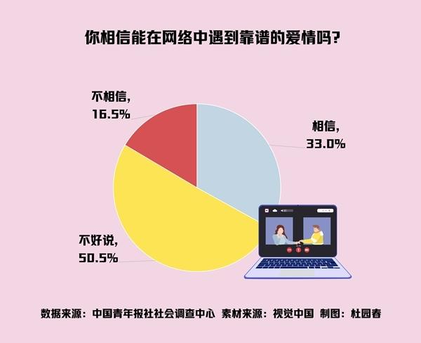 网络中能遇到真爱吗?三成受访单身青年相信,五成观望
