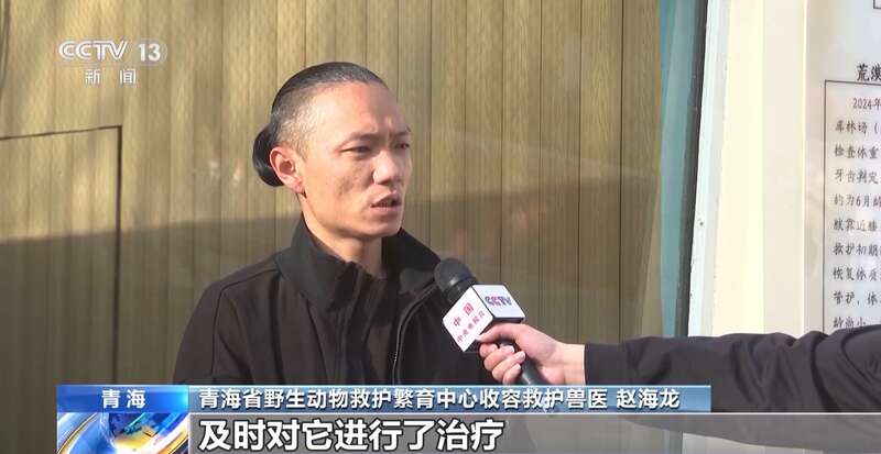 青海省野生动物救护繁育中心收容救护兽医 赵海龙:“黄安安”刚开始来的时候其实精神状态不太好,两个鼻腔内有脓性的分泌物,我们针对这个及时对它进行了治疗。治疗了大概一个月以后,它的身体状况恢复得比较好了。
