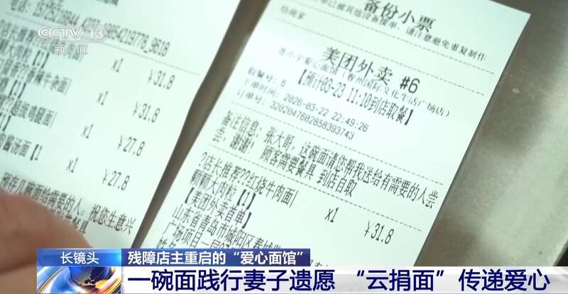 残障店主重启“爱心面馆” 各地网友“云捐面”传递爱心