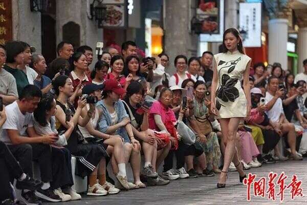 △4月13日,海南海口骑楼老街,2026海南青年国际时装周秀场上,模特在走秀。海南青年国际时装周由消博会时装周孵化而来,扶持青年原创设计师品牌和新锐设计师品牌成长。4月12日至18日,2026海南青年国际时装周在海口骑楼老街、自在湾、万象城三大特色秀场上演,呈现一场将南洋风情、滨海风光与都市潮流深度融合的全民时尚盛宴。(中青报·中青网记者 曲俊燕/摄 来源:中国青年报今日1版 )