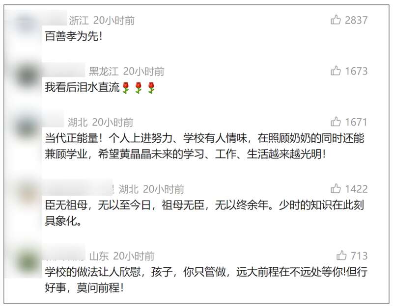 看着申请表上的情况说明,理学院党委副书记李海感触良多,“当有的学生还在依赖家里,被家人悉心照顾时,她却扛起照顾奶奶的责任,真的让人很感动。”最终,学院批准了黄晶晶的校外住宿申请。