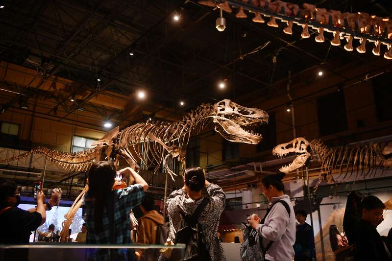 展览重磅展出两具霸王龙化石,分别是青年霸王龙“洛基”以及体长超过12米的成年霸王龙“蕾蒂娜”骨架化石,其中,“洛基”化石标本完整度超过60%。