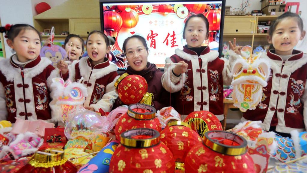 江苏连云港:萌娃制作花灯迎元宵
