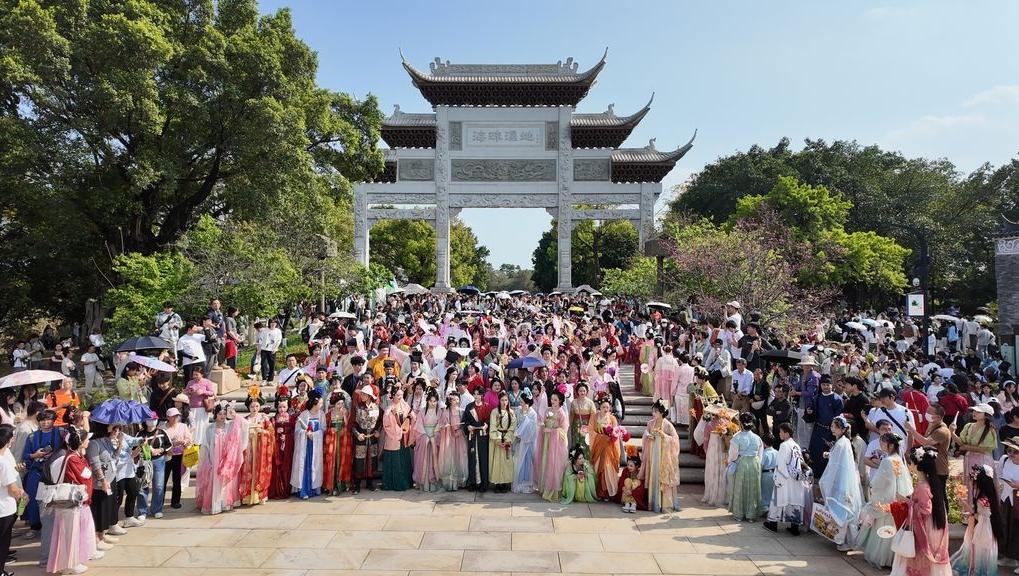 广州:上千名汉服爱好者共聚海珠湿地花朝节