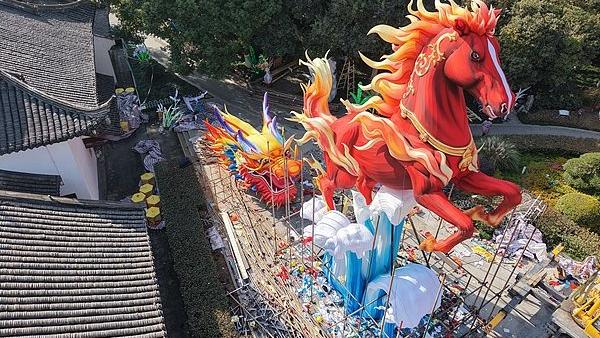 马年将至 南京白鹭洲公园新年灯彩扎制中