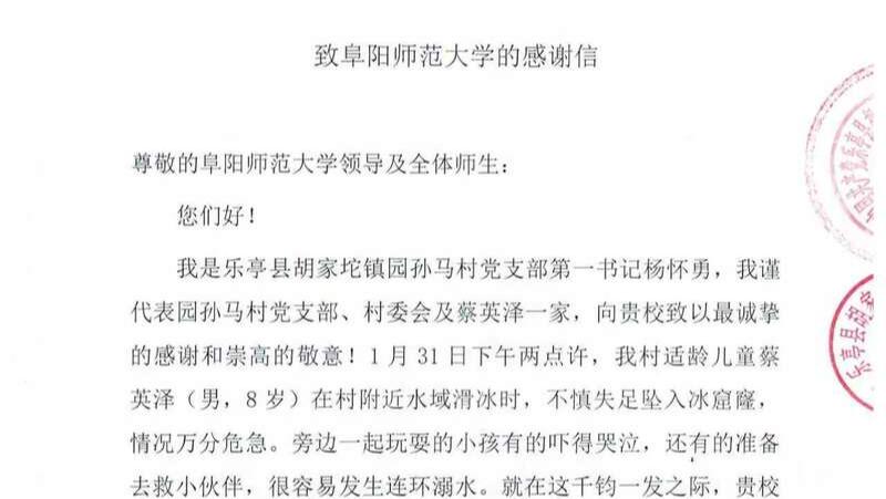 阜阳师范大学一学生跳入冰窟勇救幼童