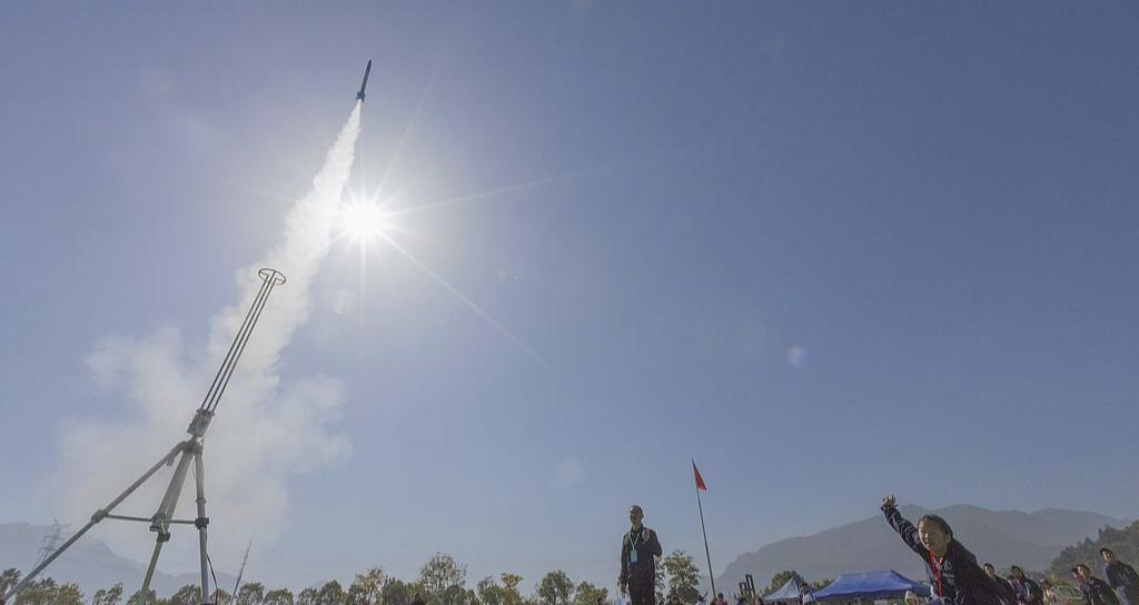 浙江温州:学生实践学校操场发射“火箭” 少年逐梦航天竞技