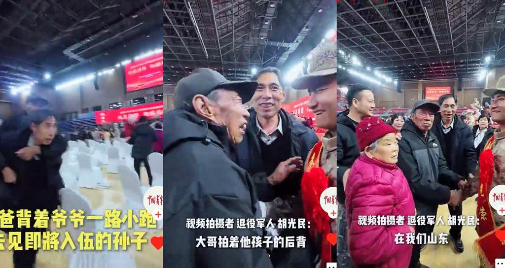 新兵欢送仪式后,爸爸背着爷爷一路小跑送别入伍的孙子。网友:我的眼睛要掉“小珍珠”了