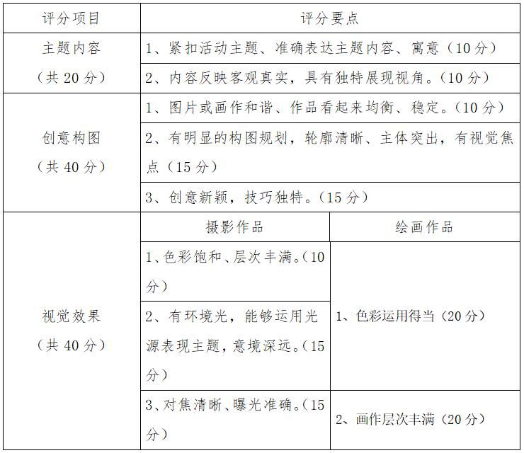 作品采用满分为100分的评分标准,根据作品的主题内容、创意构图、视觉效果三个维度进行综合评定得出分值。