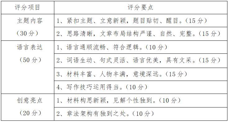 作品采用满分为100分的评分标准,根据作品的主题内容、语言表达、创意亮点三个维度进行综合评定得出分值。