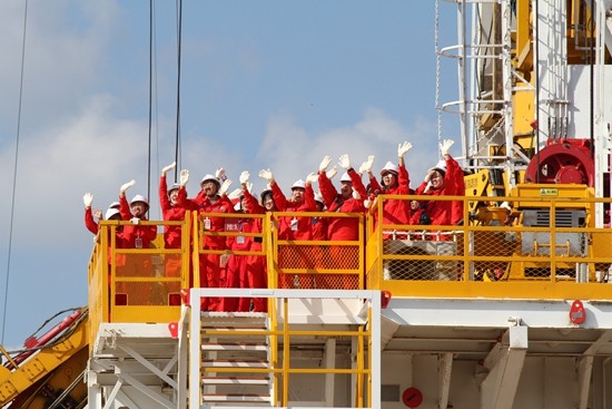 平台上的通信信号时有时无,联系家人只能靠“风”。“有时候你会发现大家都站在平台的某一边,拿着电话去找信号,给家里人打电话。可能三四天能够有这么一次(通话的)机会。”党晖回忆。