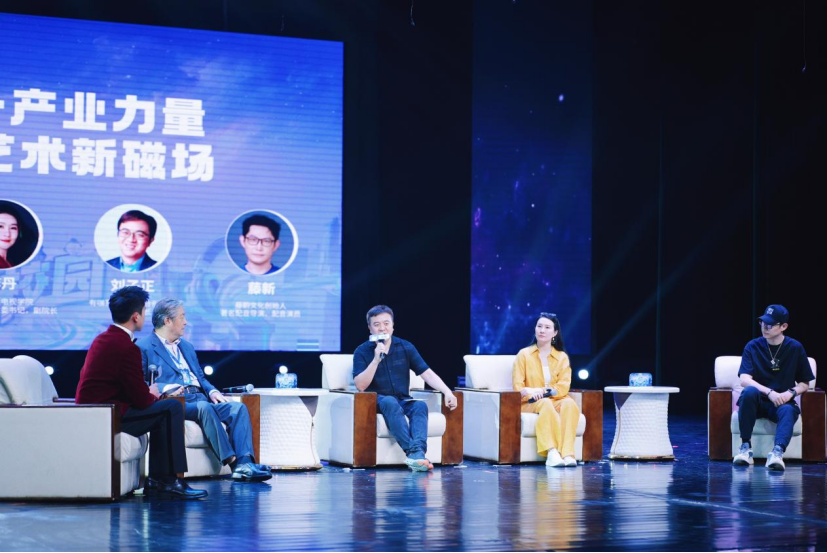 在闭幕式期间开展了以“校园新声 + 产业力量,共创有声艺术新磁场”为主题的论坛活动,邀请到的嘉宾有中国国家话剧院一级演员、著名表演艺术家王卫国;有咖互动集团董事长刘子正;藤韵文化创始人、著名配音导演、配音演员藤新;四川电影电视学院播音主持学院党委书记、副院长李丹,嘉宾们一起进行了精彩的交流讨论。