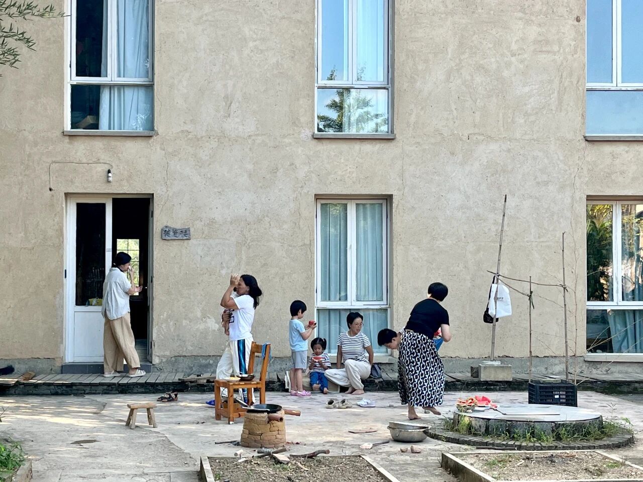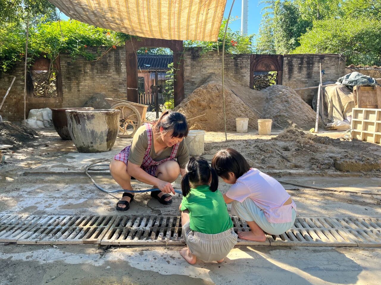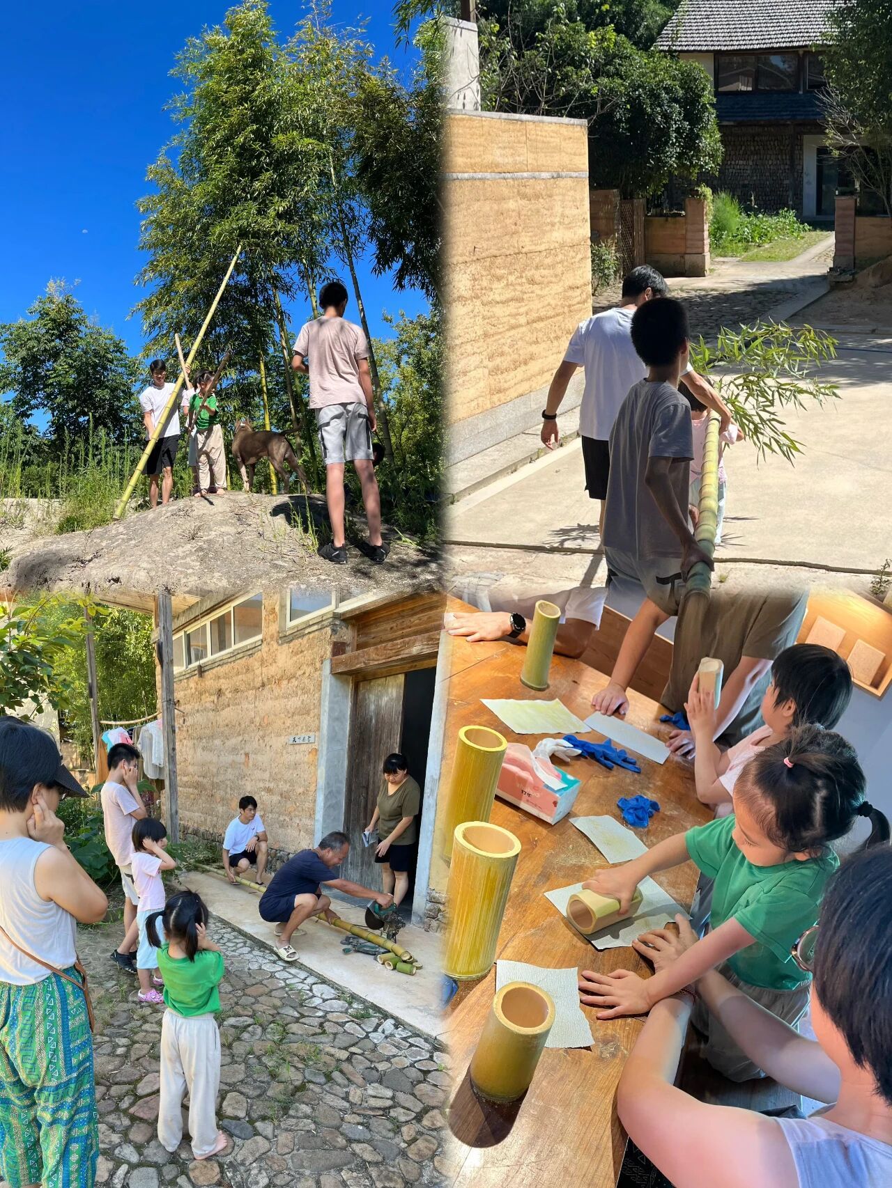 这次亲子夏令营与成人学习班不同,没那么多实打实的夯土技术与泥土配比要学习,更多的是让孩子和家长们享受与泥巴、与自然快乐玩耍——吃好玩好、共同劳作。